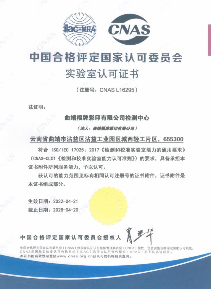 實(shí)驗(yàn)室認(rèn)可證書